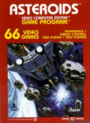 The objective of Asteroids is to score as many points as possible by destroying asteroids and flying saucers. The player controls a triangular-shaped ship that can rotate left and right, fire shots straight forward, and thrust forward. As the ship moves, momentum is not conserved — the ship eventually comes to a stop again when not thrusting. The player can also send their ship into hyperspace, causing it to disappear and reappear in a random location on the screen (with the risk of self-destructing or appearing on top of an asteroid).